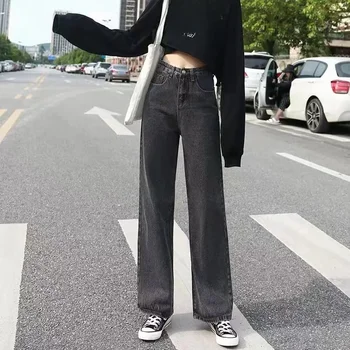 High-waisted Slimming Loose-fit Women’s Jeans Stylish Trendy Draped Straight-leg Bell Bottoms Denim