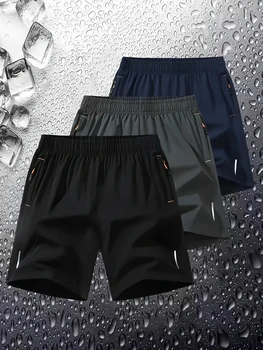 Summer Men’S Ultra-Thin Ice Silk Beach Casual Shorts Jogging Sport Quick Dry Male Zipper Loose Gym Sports Short Pants Sweatpant