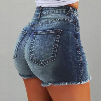 Summer Women Shorts High Waist Washed Retro Distressed Ripped Edge Solid Color Butt-lifted Slim Fit Side Pockets Casual Club Party Short Pants