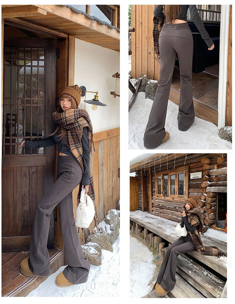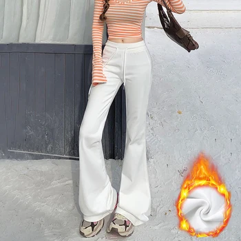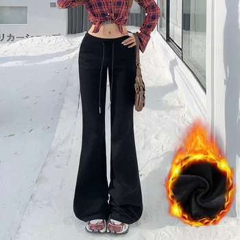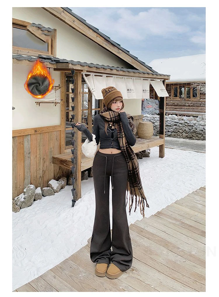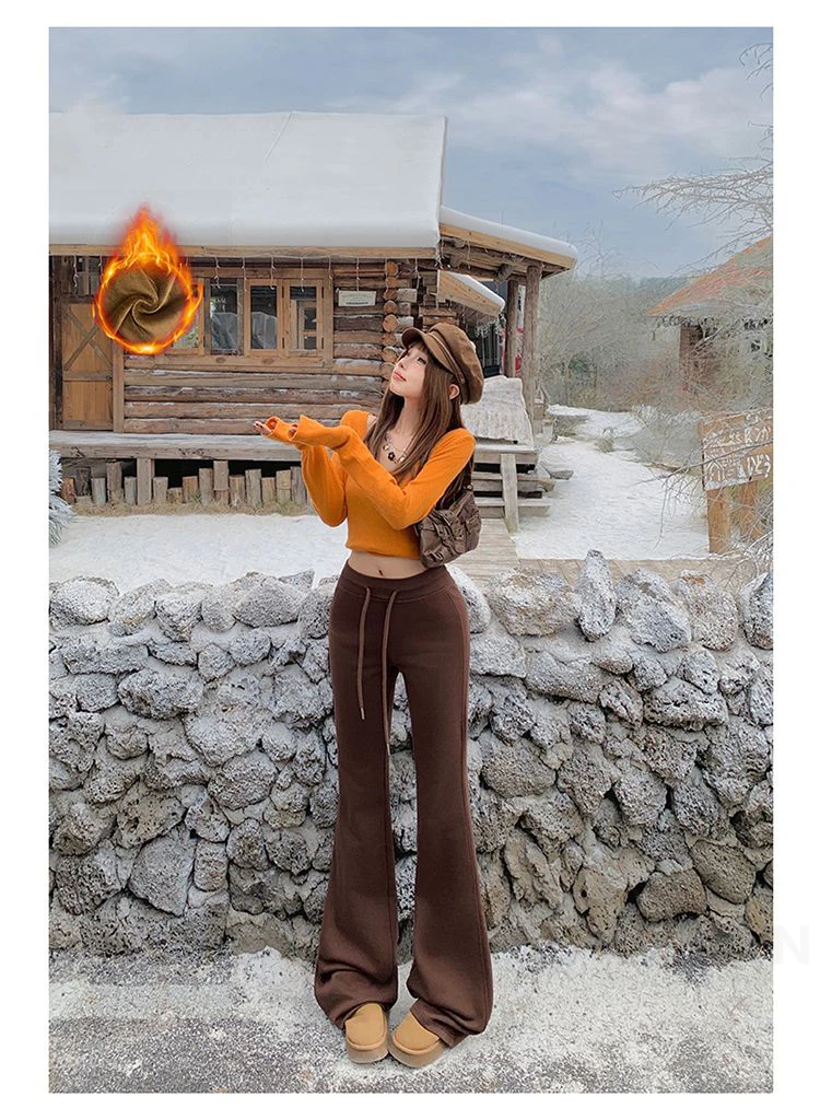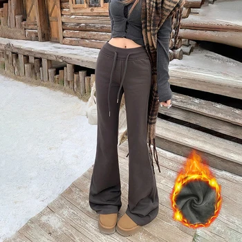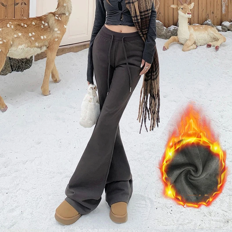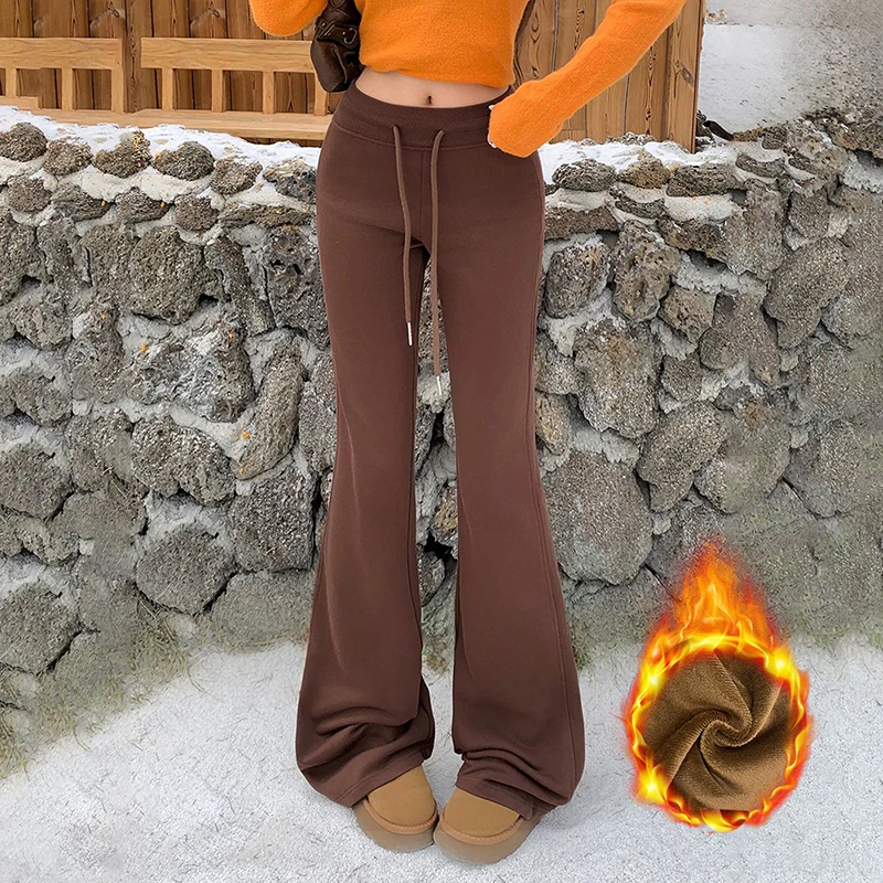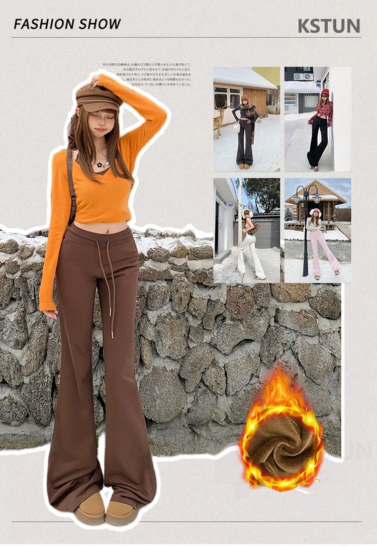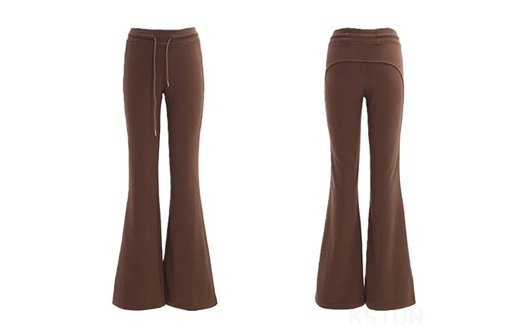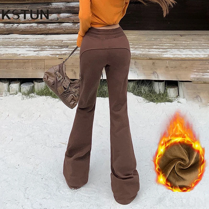 KSTUN Women Fleece Flared Pants Casual Slim Fit Warm Thick Elastic Waist Female Joggings Boot Cut Sportswear Women’s Yogo Pants