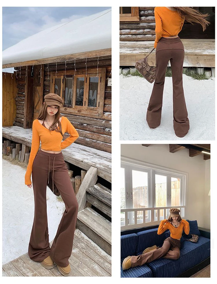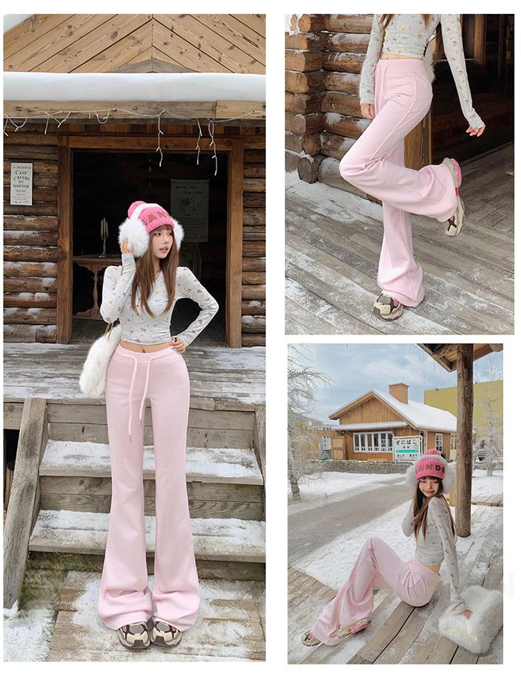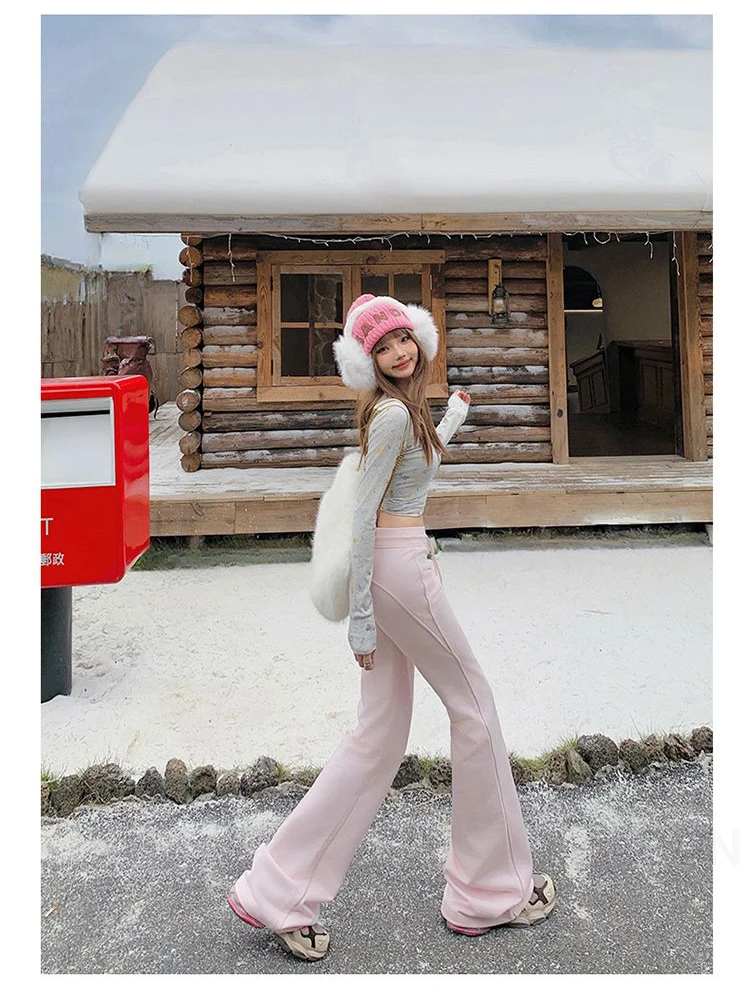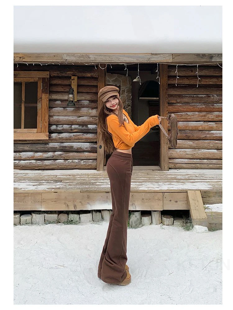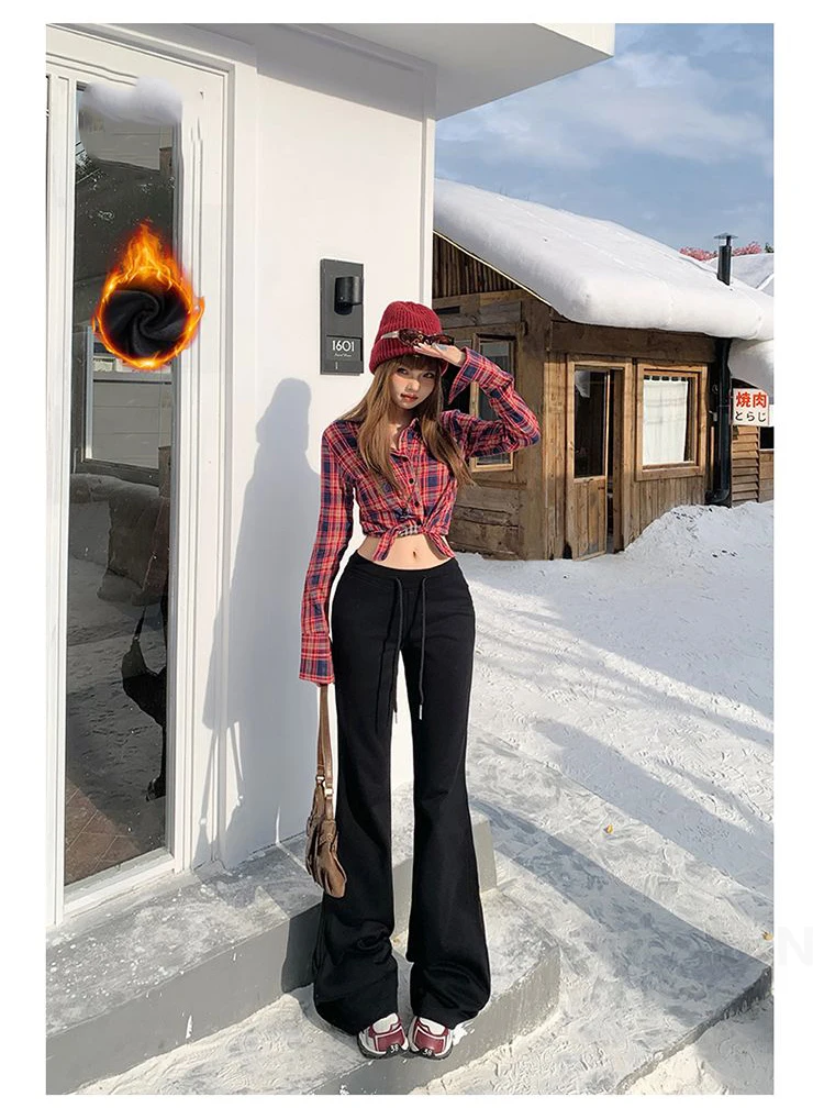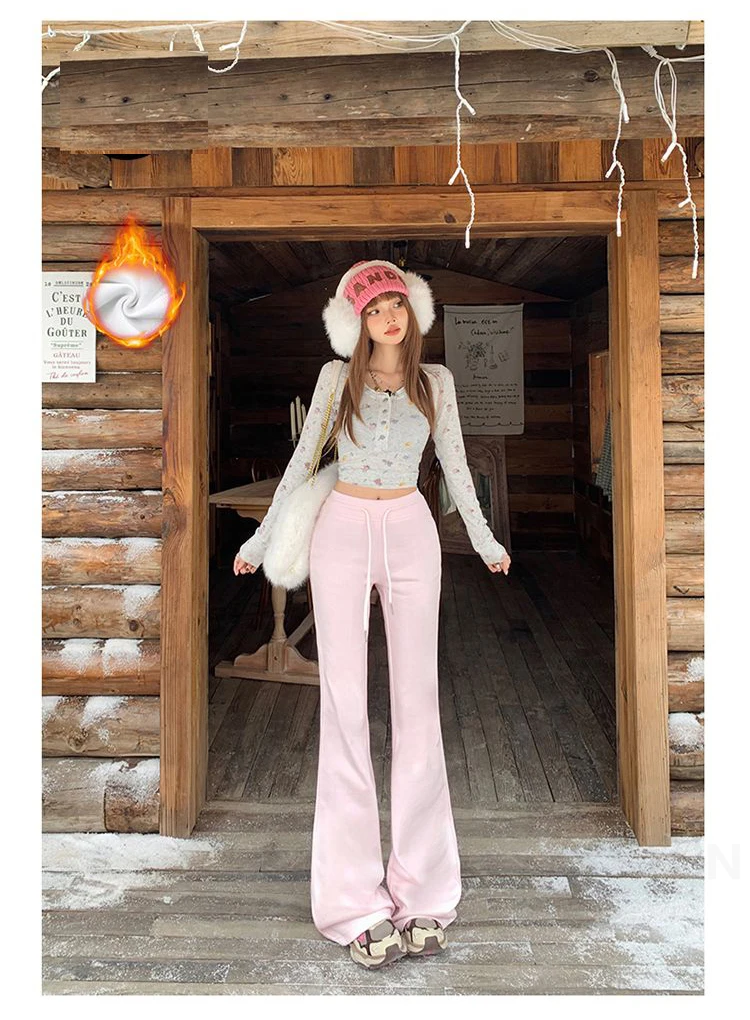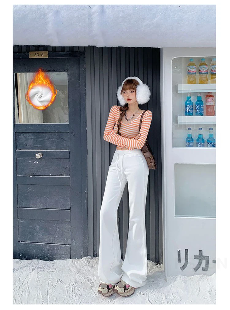 KSTUN Women Fleece Flared Pants Casual Slim Fit Warm Thick Elastic Waist Female Joggings Boot Cut Sportswear Women’s Yogo Pants