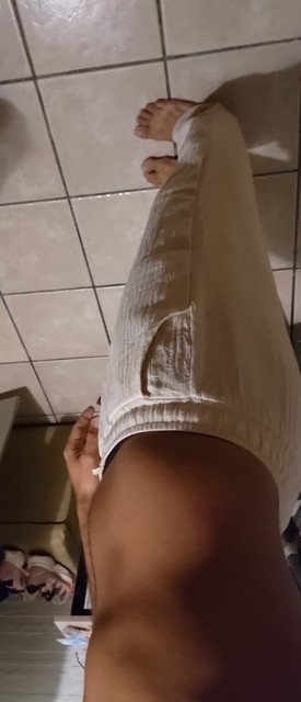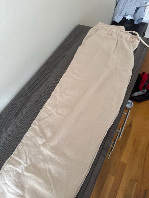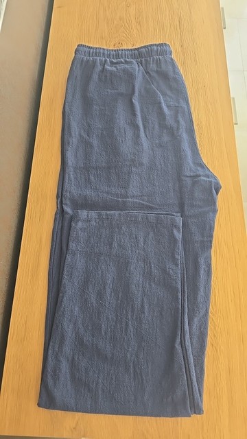 Bequeme Baumwollhose mit Leinenanteil. Leicht und luftdurchlässig. Ideal für warme Sommertage. Schöne Farbe und passt gemäß der Größentabelle.