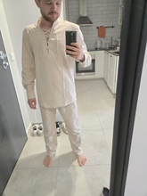 Really really nice soft material trousers. I have bought more expensive trousers and these feel way nicer, fit perfectly, not oversized but a bit baggy in a good way. Great quality.