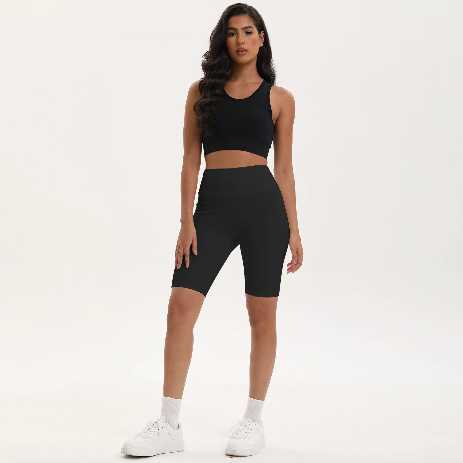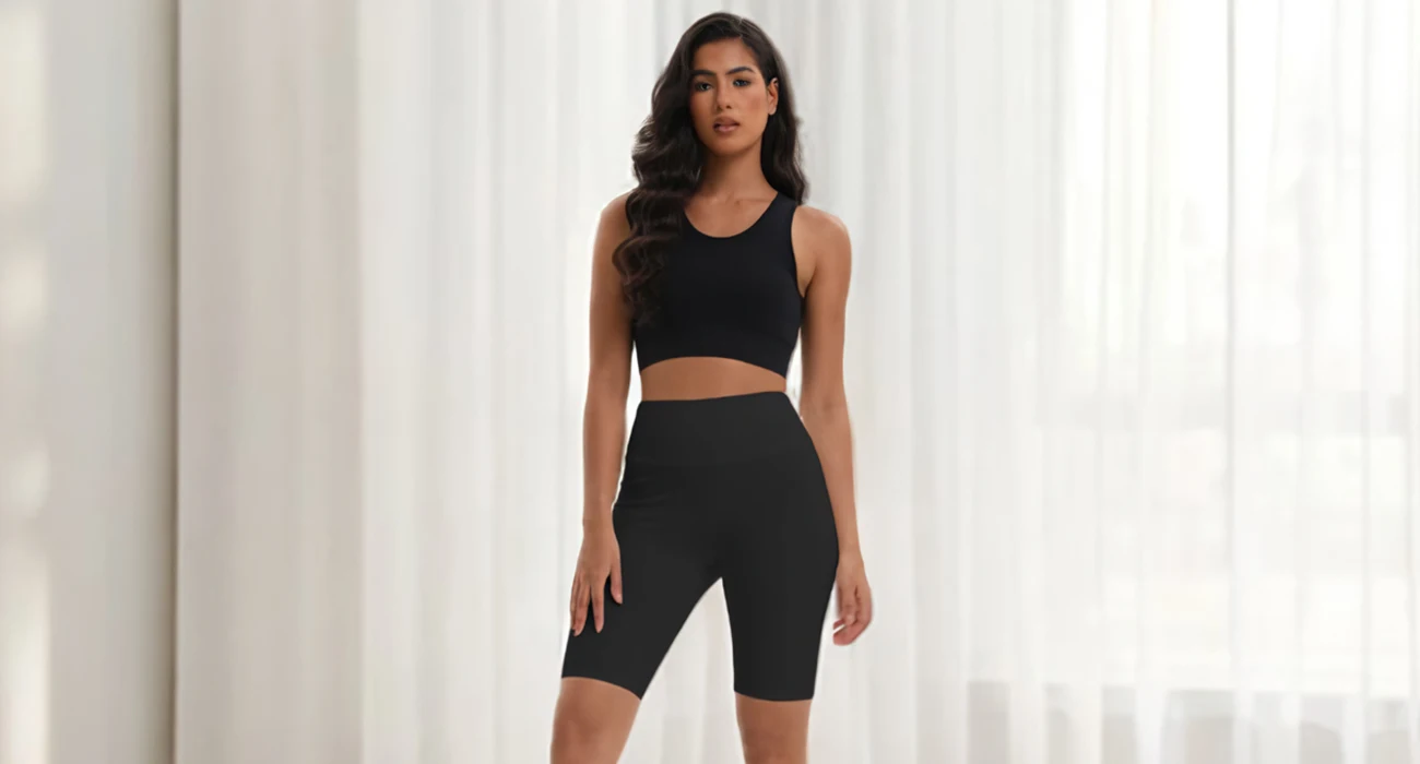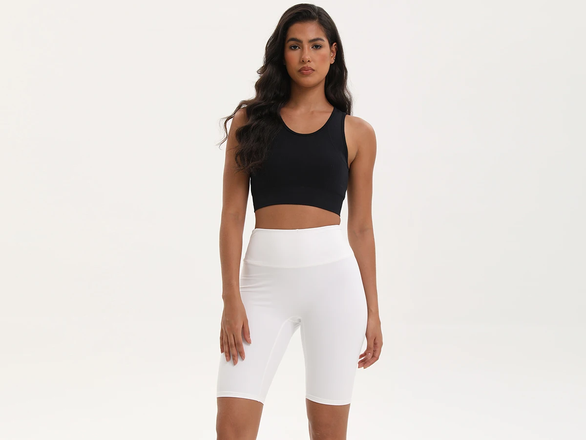 Same durable 85% Polyamide + 15% Elastane blend as our leggings. Flatlock seams withstand squats, HIIT, and hot yoga without chafing.