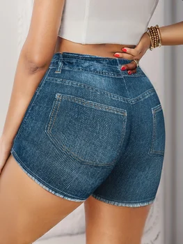 Women’s Stretch Denim Like Shorts with Floral Print Design Casual Versatile Summer Style