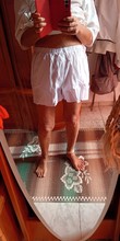 Шорти підійшли ідеально, мої параметри- бедра 121см, талія 110 см, резинка гарно тягнеться, тканина легка і делікатна, не просвічується наче, по крайній мірі не помічала це, трохи нитки стирчать, але то не критично.