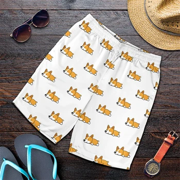 Funny Anime Corgi Graphic Beach Board Shorts Man 3D Print Dogs Board Shorts Sports Gym Swim Trunks Swimsuit Homme Cool Shorts