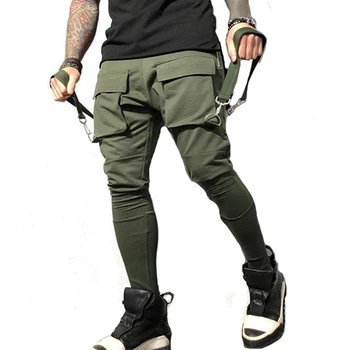Men Running Stretch Tights Sweatpants Sports Absorbing Breathable Fitness Casual Cotton Multi Pocket Pants Slim Leggings